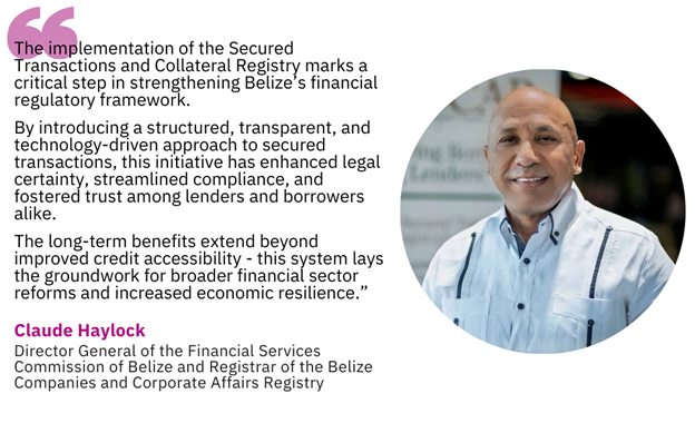 This international recognition highlights Belize’s leadership in secured transactions reform and affirms the significant impact of the STCR in driving sustainable economic growth and improving access to finance.